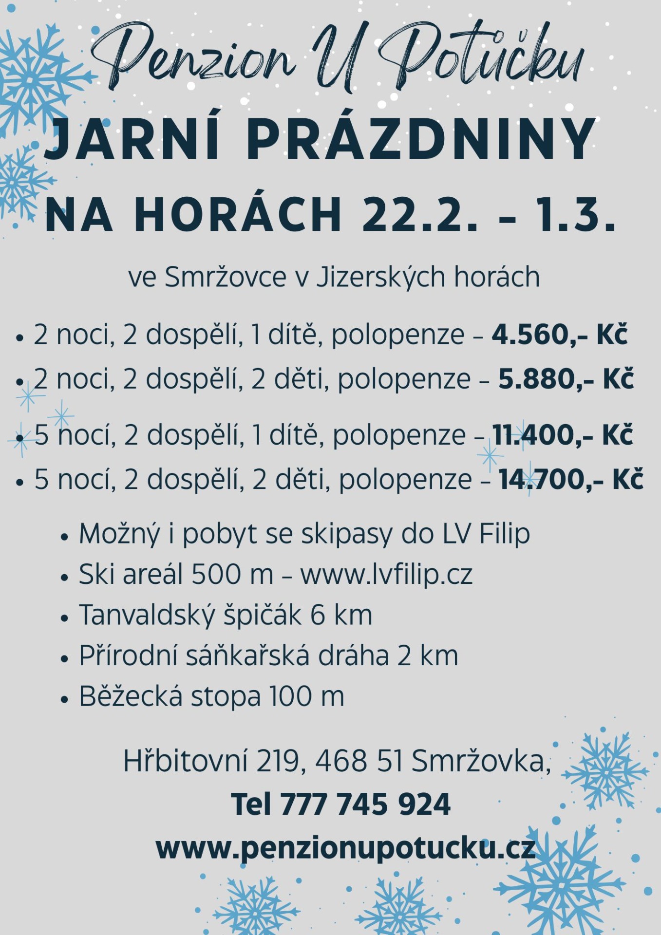 Pobyty lze rezervovat se skipasy do Skiareálu Filip na Smržovce nebo bez.